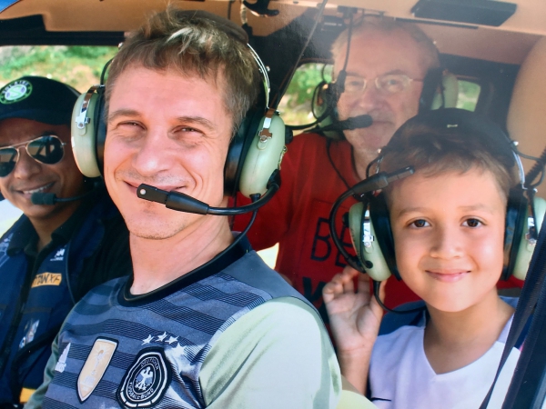 Jean-Yves, Sylvain & Serge in the Robinson R44 helicopter (Lexis Hibiscus, Port Dickson, 7th January 2017).