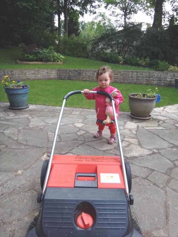 Joséphine helps Papy to clean the patio (L’Étang la ville, 17th June 2014).