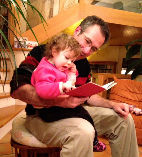 Joséphine loves to read with her Dad (L’Etang la Ville, 5th December 2014).