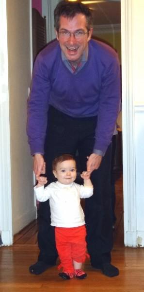 Joséphine apprend à marcher avec son Papa (Paris, 16 janvier 2014).