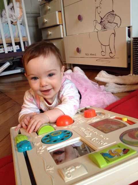 Joséphine plays with the « Activity Center » (November 2013, Paris, boulevard Lefebvre).