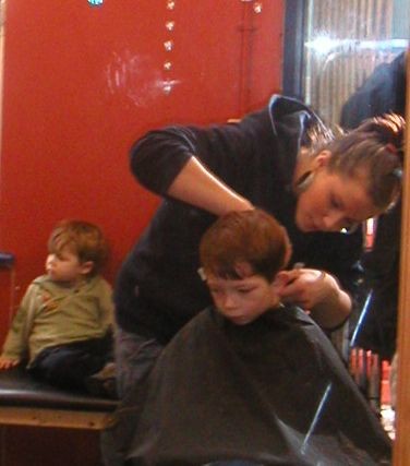 Julien chez le coiffeur (ANGEL, Islington, Février 2006)