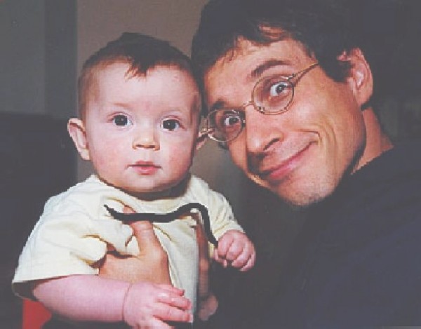 Julien in Jean-Yves’ arms (Islington, May 2001).