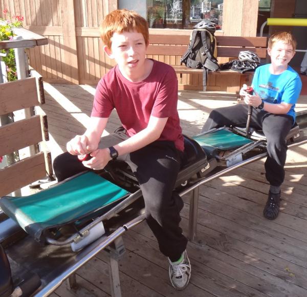 Julien and Daniel sledge on the summer toboggan at La Clusaz (9th August 2014).