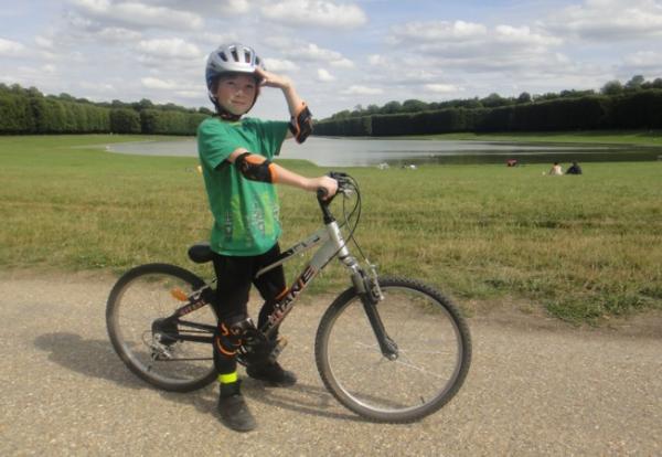 Julien fait du vélo dans le parc de Versailles (1er août 2010).