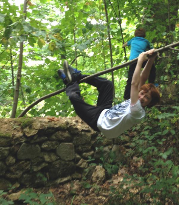 Julien plays with a tree in the woods of Marly (Joyenval door, 24th August 2013).