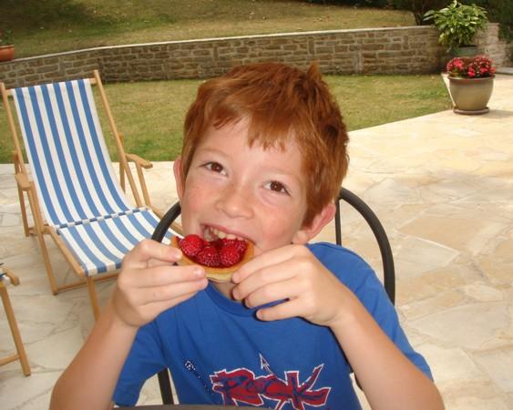 Julien se délecte d’un gâteau aux framboises (L’Etang la Ville, août 2009).