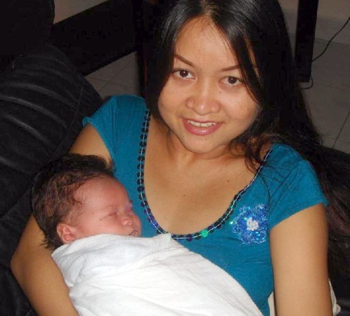 Kanda holds Vincent (15 days old) in her arms (Cyberjaya, Malaysia, 30th June 2007).