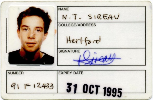 La carte d’étudiant de Nicolas au Hertford College (Oxford, 1995).