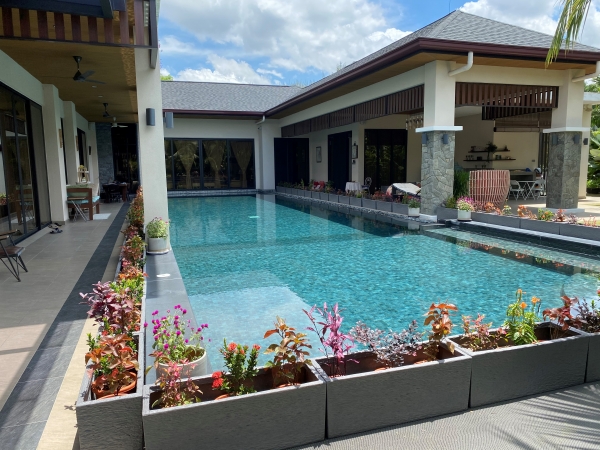 La piscine du n° 161 est maintenant complètement entourée de bacs de fleurs (mesure de sécurité pour Katrina).