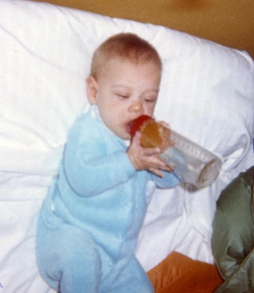 The first time Jean-Yves was holding his bottle by himself (Carcassonne, summer 1971)!