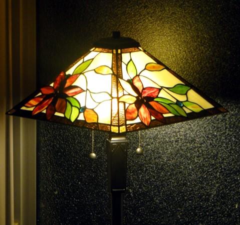 The new stained glass floor lamp (Tiffany) of Simone, next to her desk (February 2011) !