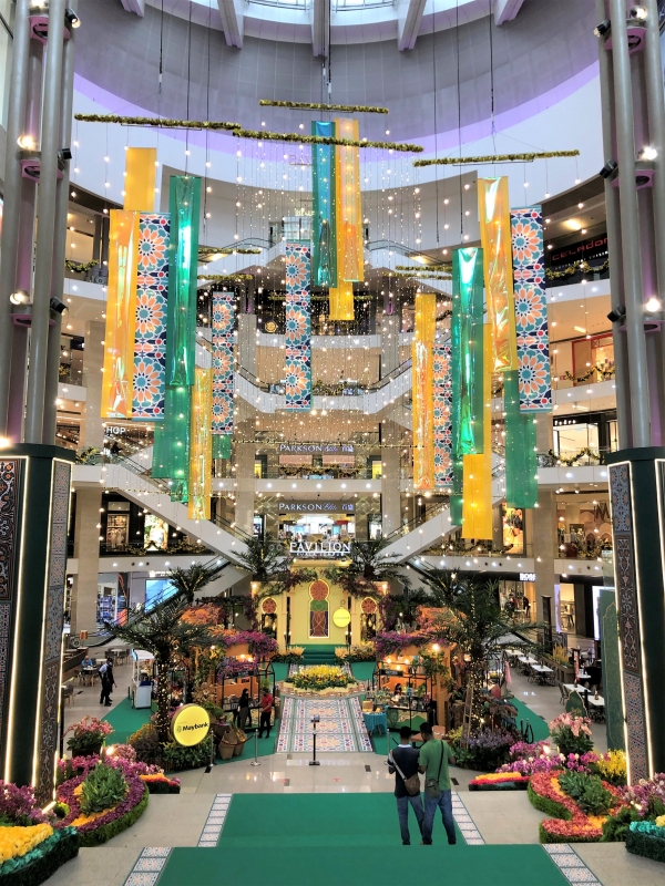 The festive decorations of the main hall in the luxurious mall « Pavilion » (Kuala Lumpur, 20 04 21).