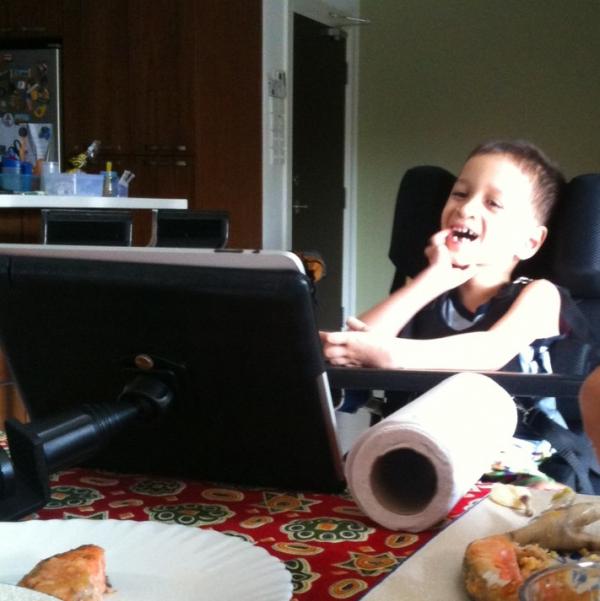 Les images de l’ordinateur font rire Vincent (Cyberjaya, 22 décembre 2012).