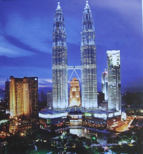 The Petronas towers at night (Kuala Lumpur, July 2008).