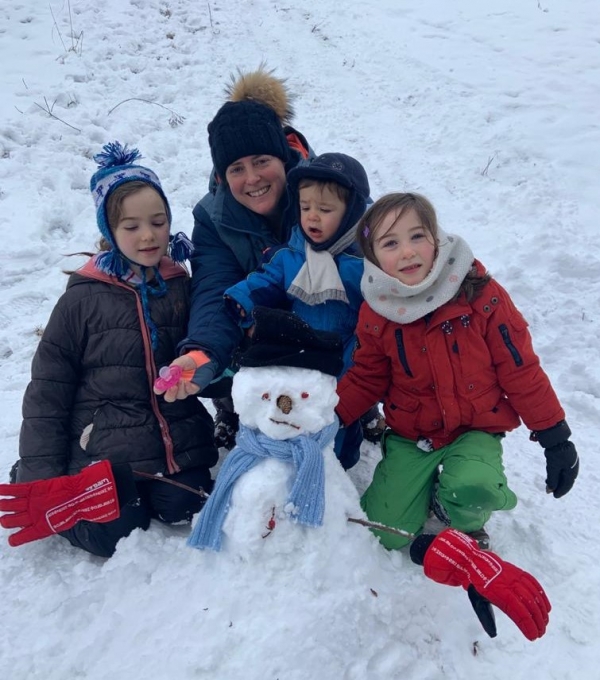 Les trois enfants ont construit un bonhomme de neige avec Caroline (29 décembre 2020, marly).
