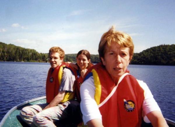 Maintenant c’est Simone qui rame ! (lac de la pourvoirie de La Tuque, Québec, été 1999).