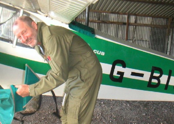 Maurice prépare son avion pour notre vol (STAPLEFORD, 27 JUIN 2005)