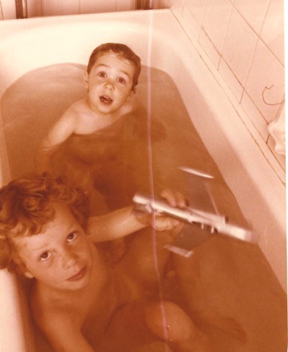 Nicolas (6 years old) and Stéphane (3 years old) are in their bath (Ansdell, Lytham St Annes, Lancashire, 1979).