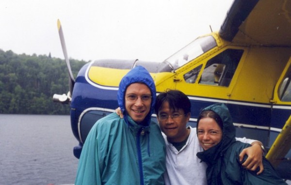 Nicolas, Didier and Sonya at "La Tuque" (Québec) after a flight in a Broussard aircraft (summer 1999).