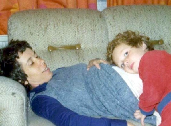 Nicolas écoute son futur frère Stéphane dans le ventre de Simone ! (ANSDELL, SEPTEMBRE 1976)