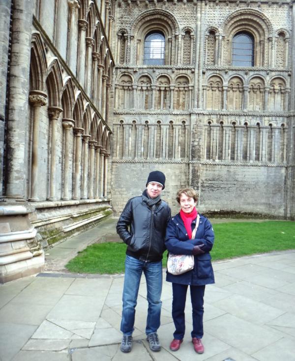 Nicolas and his Mum in front of the Ely cathedral (Cambridgeshire, 23rd February 2014).