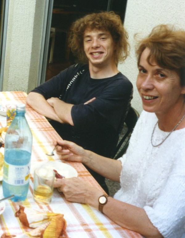 Nicolas and Simone are having lunch (L’Etang la Ville, July 1993).