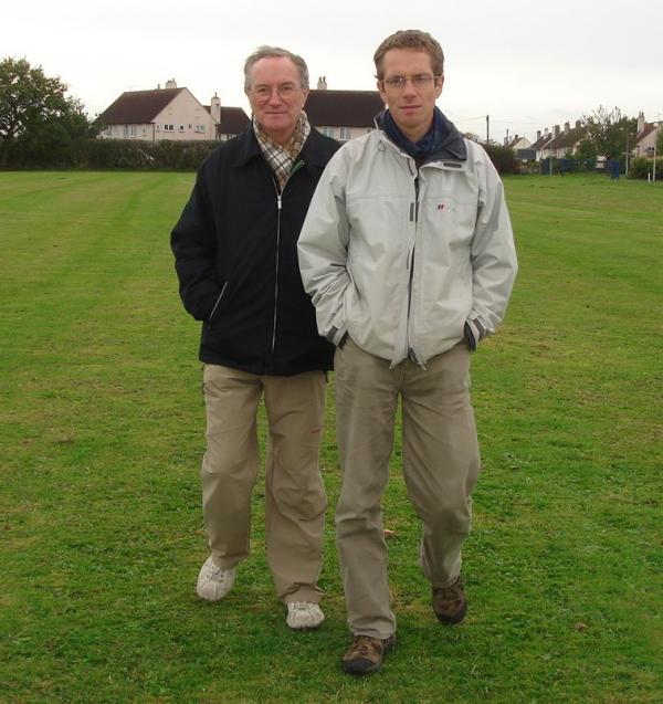 Nicolas and his father on the Trumpington Fawcett Junior School green (26th October 2008).