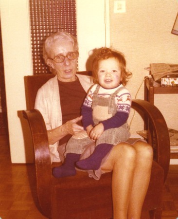 Nicolas sur les genoux de Bonne Maman à Caluire (Lyon, 1974).
