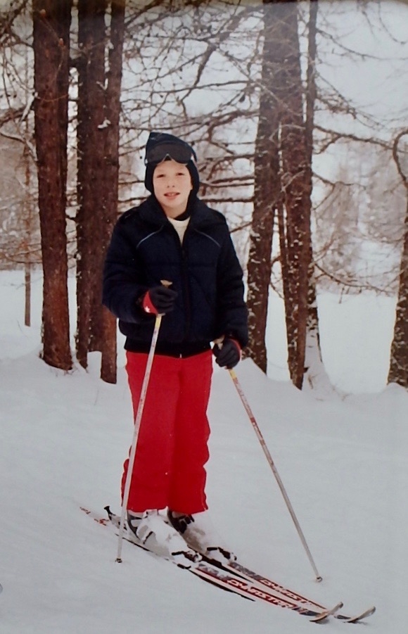 Nicolas sur ses skis en classe de neige (janvier 1984).