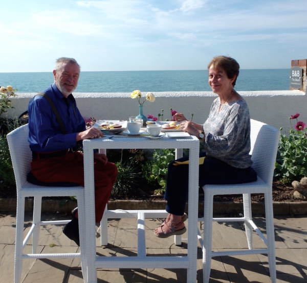 We take our breakfast in our B&B in front of the Hythe beach (near Folkestone, south of England, 1st July 2015).