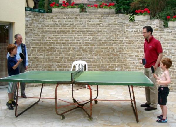 Julien, Daniel, Stéphane and Papy play table-tennis (July 2009).