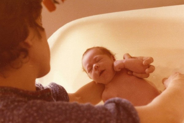 Little baby Stéphane (a few weeks old) is having a bath (November 1976, Ansdell).