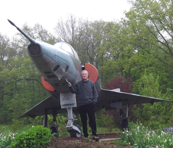Picture taken (28th April 2012) in « Buc » (village, south of Paris, which used to have an aerodrome). I am in front of a Mirage IIIR (recce version) in static display. When I worked at the Dassault Design Office in the early 60’s, I made this aircraft nose drawings.