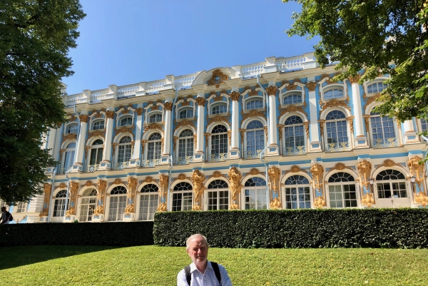 Serge in front of the Catherine II palace in St-Petersburg (Russia, 22nd July 2019).