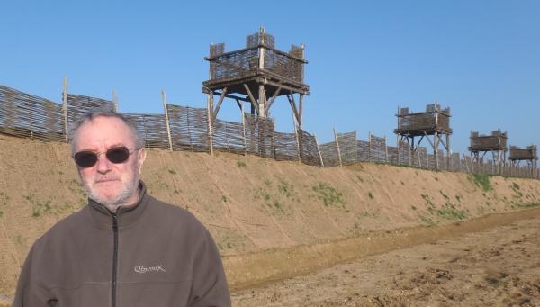 Serge devant la reconstitution des fortifications gauloises du siège d’Alésia par les Romains (Bourgogne, 10 mars 2014). La bataille d’Alésia eu lieu en 52 avant J.-C. il y a presque 2000 ans !