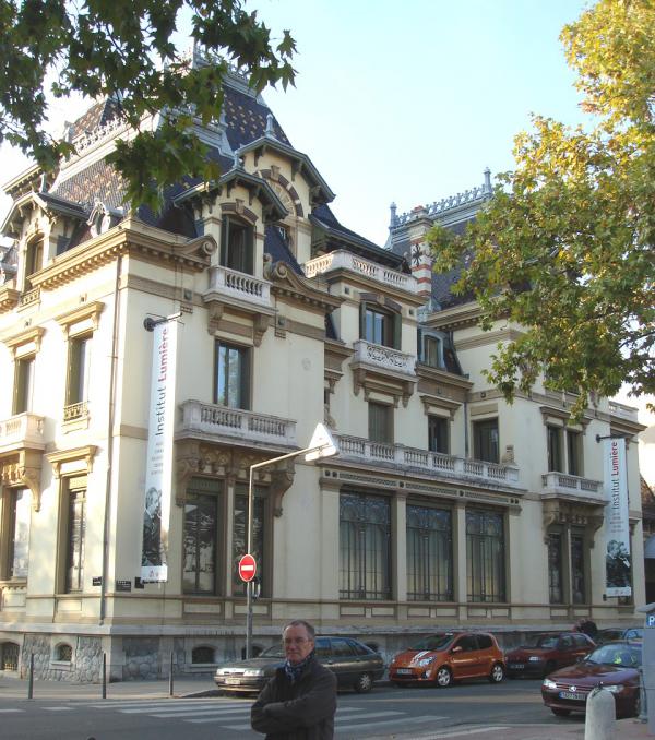 Serge in front of the beautiful museum of the Lumière brothers who invented cinema (Lyon, September 2008).