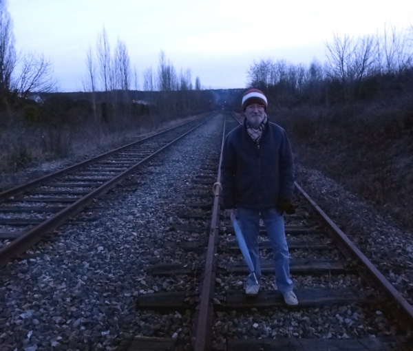 Serge walks (with Geoff) on the old railroad at St Cyr (14th January 2015).