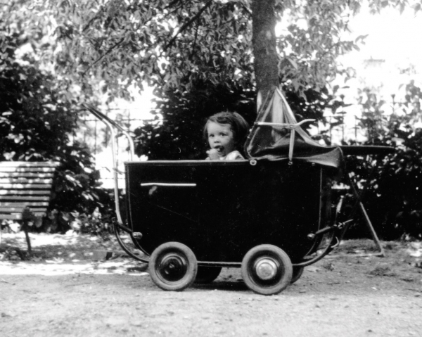 Simone (2ans) dans sa poussette (Lyon, 1944).