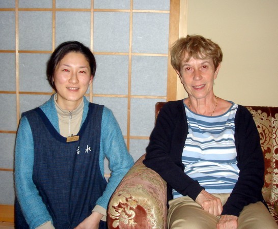 Simone with our friendly ryokan landlady (Kyoto, May 2007).