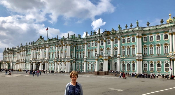 Simone in front of the Hermitage palace and museum in St Petersbourg (20th July 2019).