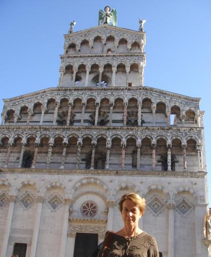 Simone devant l’église St Michel à Lucques (Italie, octobre 2009).
