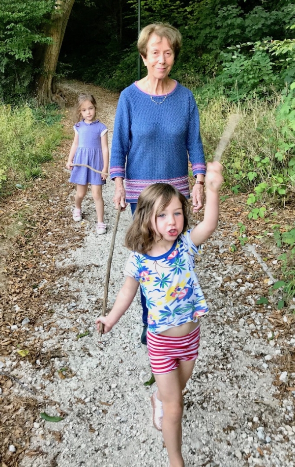 Simone, Éléonore and Joséphine walk in the woods near our house (L’Étang la Ville, 1st September 2018).