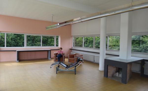 Simone is in the lounge of the « Villa Savoye » (8th August 2013, Poissy).