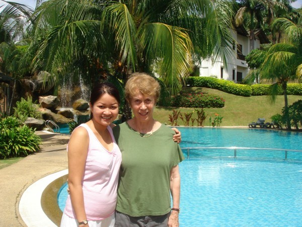 Simone and Kanda in front of the Cyber Gardens pool (Cyberjaya, July 2007).