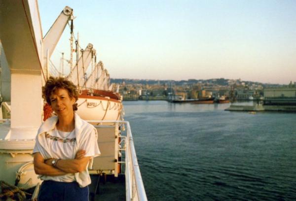 Simone sur le Ferry-Boat au départ de Naples (août 1987).