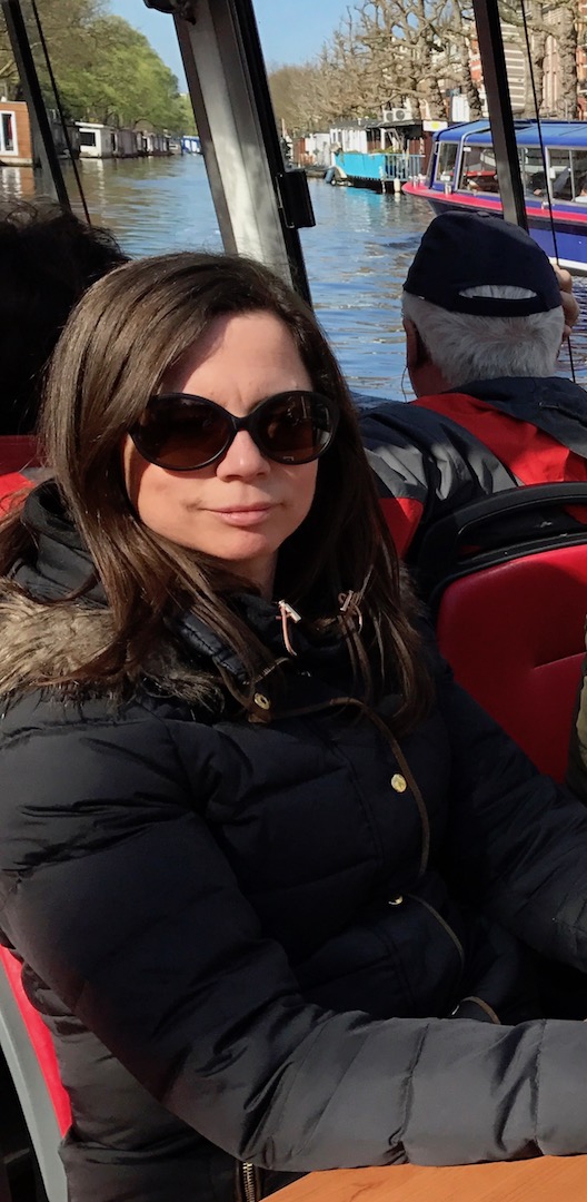 Sonya on a canal boat in Amsterdam (2nd April 2017).
