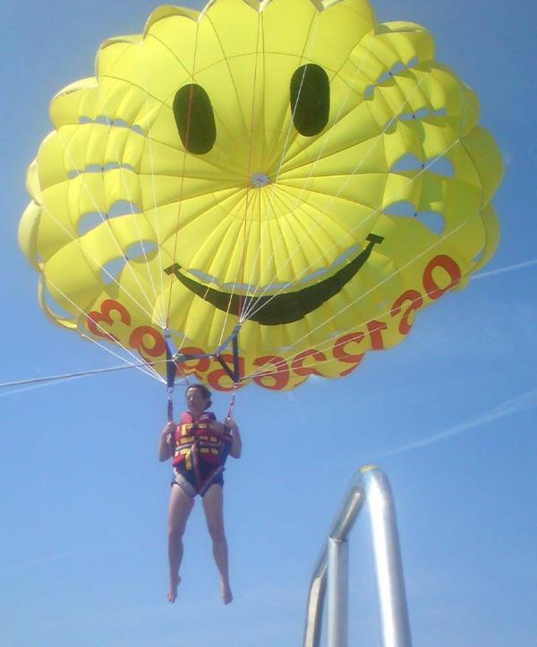 Sonya fait du parachute ascensionnel (tiré par un bateau) à Argelès (Août 2011).