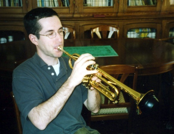 Stéphane plays the trumpet ! (at Mamie’s retirement home, Rueil, Christmas 2001).