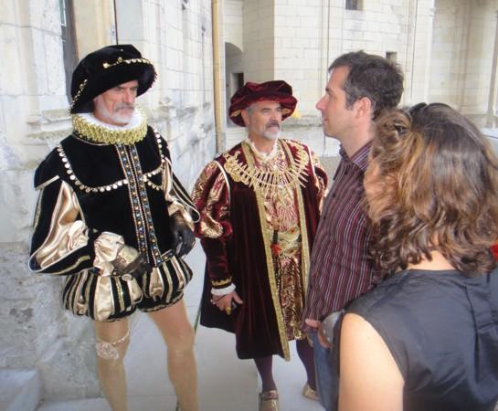 Stéphane et Caroline parlent à des aristocrates de l’époque François 1er (Chambord, 9 octobre 2010).)
